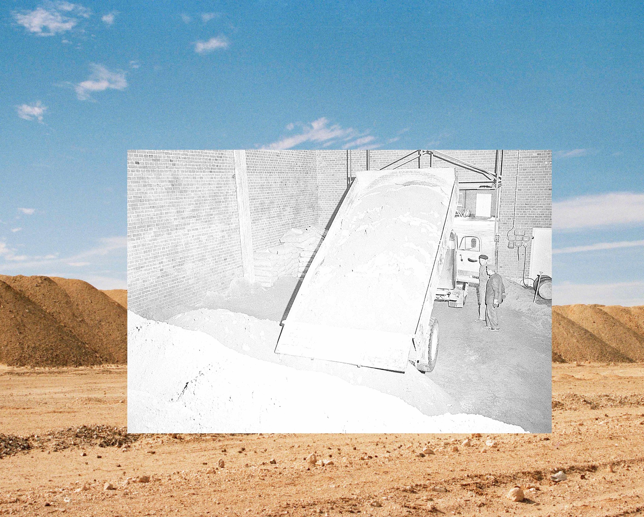 We Eat The Earth, published by The Eriskay Connection, is a photobook that combines archival images, fieldwork photographs and texts to explore how agriculture's demand for nutrients reshapes the earth and impacts both political and physical environments. The project examines the historical and ongoing ties between food production, white supremacy, empire and the environmental crises driven by extractive capitalism. Through a mapping of fertiliser's global flower – tracing materials from Western Sahara to Sweden or from Germany to the Netherlands – this book highlights the devastating environmental, political and socio-economic consequences of fertiliser production and its far-reaching impact on the planet.